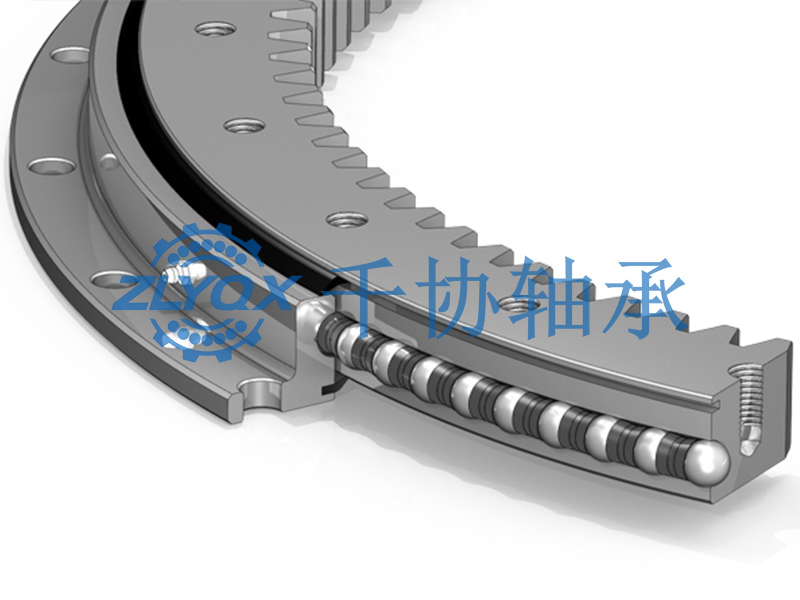 單排四點接觸球式回轉支承(輕型L系列),由兩個座圈組成,結構緊湊,重量輕,鋼球與圓弧滾道四點接觸,能同時承受軸向力、徑向力和傾翻力矩。回轉式輸送機、焊接操作機、自動清洗機等中小型和輕型機械均可選用。...