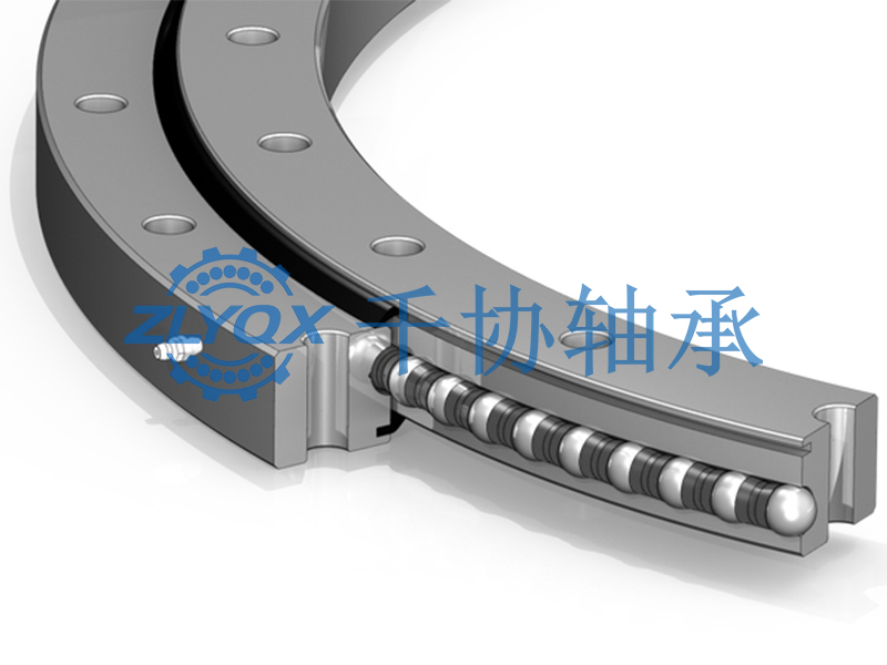 單排四點接觸球式回轉支承由兩個座圈組成,結構緊湊、重量輕、鋼球與圓弧滾道四點接觸,能同時承受軸向力、徑向力和傾翻力矩。回轉式輸送機、焊接操作機、中小型起重機和挖掘機等工程機械均可選用。...